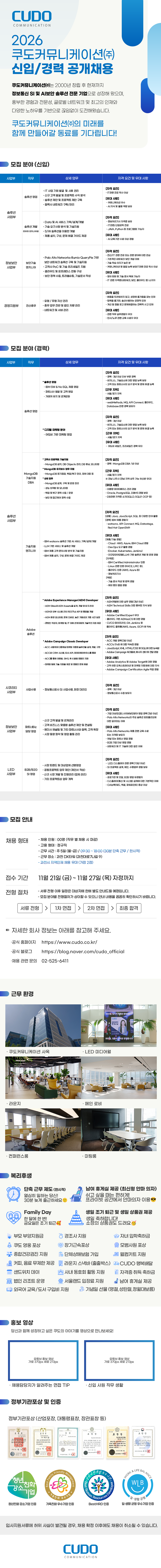 2026 쿠도커뮤니케이션(주) 신입/경력 공개채용